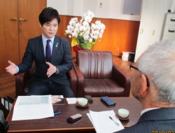高森町の草村大成町長は3月13日、熊本市中央区のくまもと経済本社で「南阿蘇鉄道は南阿蘇村で本格的な復旧工事が始まった。将来的には肥後大津駅に直接乗り入れしたい」などと語った。