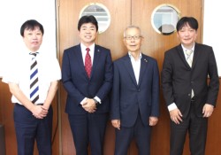 左から田代広報部長、本田社長、松岡、山下グループリーダー