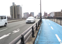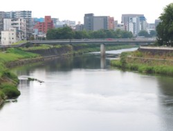 子飼橋一帯は北側に子飼商店街・薬園町。そして北東に熊本大学のキャンパスがあり、南側には熊本学園大学、県立熊本高校などがある文教地区。学生や若い人たちの通行が多い地域。橋を歩いていて、「なんとなくウキウキするような感じがする」と思った。