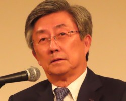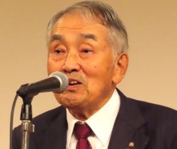 祝辞を述べる小笠原浩安川電機会長(経済同友会代表幹事)