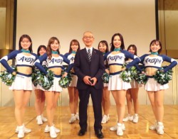 このあと、名刺交換やアトラクション「アビスパのオフィシャルチアリーダーズ」8人によるパフォーマンスを楽しんだ。中締めはアキラ水産の安部泰宏社長が務めた。