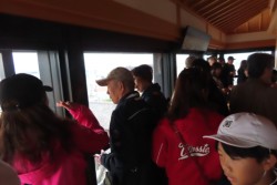 阿蘇方面を眺める鹿児島の小学生たち(天守閣・展望所)