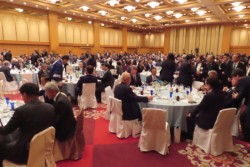 このあと、松山政司自民党参議院議員会長、谷川浩道福岡商工会議所会頭、服部誠太郎福岡県知事、中村英一福岡市副市長、寺崎一雄テレビ西日本会長が祝辞を述べ、太田宏昭福岡ソフトバンクホークス専務の音頭で乾杯した。