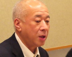 まず、松岡泰輔(会長が「きのうは八代市の小野泰輔市長をインタビューした。八代市は熊本県の二番目の都市だが、依然人口の減少が続いている。中心街の本町通りも通行客が少なかった」などと挨拶した。
