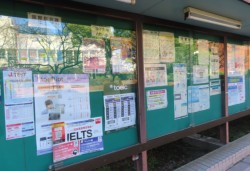 多くの掲示物が貼られていた「掲示板」