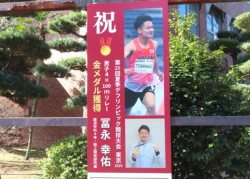 冨永幸佑選手(経済学部4年)の「祝看板」