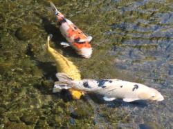 水源地で生きよ勢いよく泳ぐ錦ゴイ