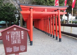 赤の鳥居が鮮やかな「水前寺・稲荷神社」