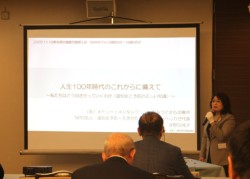 総会は事務局議案が全て承認された後、「人生100年時代のこれからに備えて〜認知症と予防を正しく知りましょう〜」と題して(医)医誠会理事長の津野田尚子ドクターの講話が行われた。医師としての豊富な経験から「認知症」の症状の特徴、発症予防と悪化予防等について解説した。高齢化社会において得てして暗く重いテーマとなりがちであるが、所々に笑い声も出る程分かり易く明るい雰囲気の中で講話が進んだ。懇親会では、杯を片手に1年ぶりの交流を楽しみ、焼酎・ワイン等を景品とした抽選会も行われた。閉会時は「鹿児島おはら節」を全員で踊り、次の再会を誓い合った。(坂井)