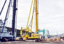 熊本都市圏と天草市中心部の移動所要時間短縮を目指し、国土交通省と熊本県が整備を進める地域高規道路「熊本天草幹線道路」(全長約70q)の一部で、国交省が担当する「宇土道路」の工事が着々と進んでいる。